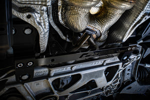 The RacingLine MQB & MQB 'EVO' Billet Front Subframe Brace precisely bolts up to help fight subframe flex. This improves rigidity to help protect the car's dynamic responses under hard loading.